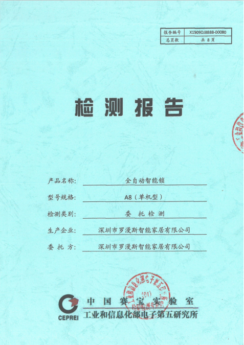 近日,羅曼斯的A8全自動(dòng)智能鎖和新品G3智能門鎖嚴(yán)格按照相關(guān)規(guī)定和要求,分別通過(guò)了中國(guó)賽寶實(shí)驗(yàn)室檢測(cè)認(rèn)證、公安部安全與警用電子產(chǎn)品質(zhì)量檢測(cè)中心&國(guó)家安全防范報(bào)警系統(tǒng)產(chǎn)品質(zhì)量監(jiān)督檢驗(yàn)中心認(rèn)證。
