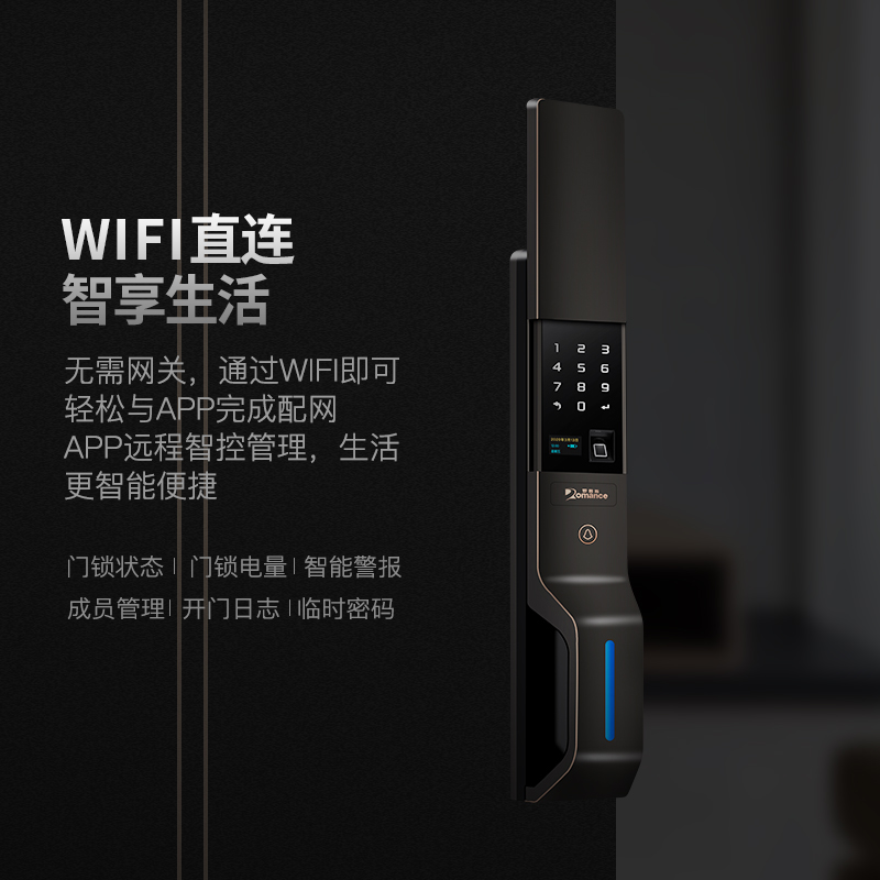 內(nèi)置WiFi芯片,數(shù)據(jù)加密傳輸,安全可靠。WiFi 信號(hào)穩(wěn)定,通訊距離遠(yuǎn),穿墻能力強(qiáng),無需忍受網(wǎng)關(guān)的諸多缺點(diǎn)。 羅曼斯智能鎖WiFi直連版,支持查看門鎖常態(tài)動(dòng)態(tài),每次一開門都記錄,直接通過 WIFI傳送至手機(jī)APP 終端。并 人性化設(shè)計(jì)一次性臨時(shí)密碼,可以通過微信或者短信方式發(fā)送到客人接收端,而且在規(guī)定時(shí)間內(nèi)使用一次立即失效,既保證了家里安全,又避免了客人朋友在外面就等的不方便。